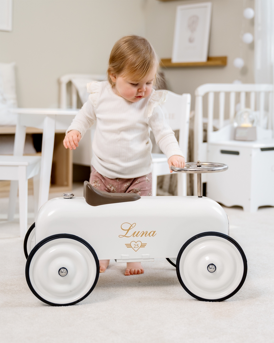 Mini Sparkebil med navn, hvit - Vintage