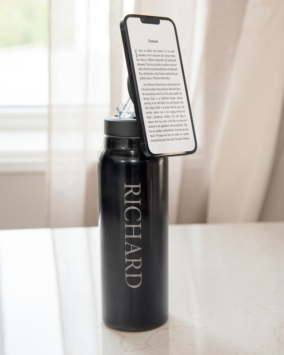 659 krVannflaske med navn og magnetisk mobilholder, svart