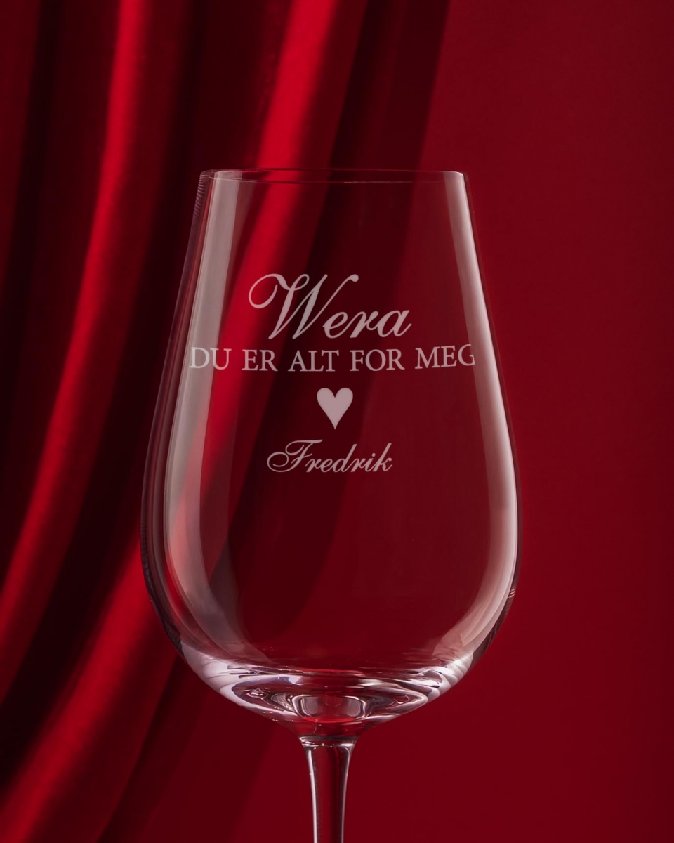 Dette vinglasset med din egen gravering gjør gaven virkelig personlig. Den inngravert teksten, enten det er et navn eller en kort melding, gir glasset en unik karakter og gjør at det føles spesielt fra første stund.