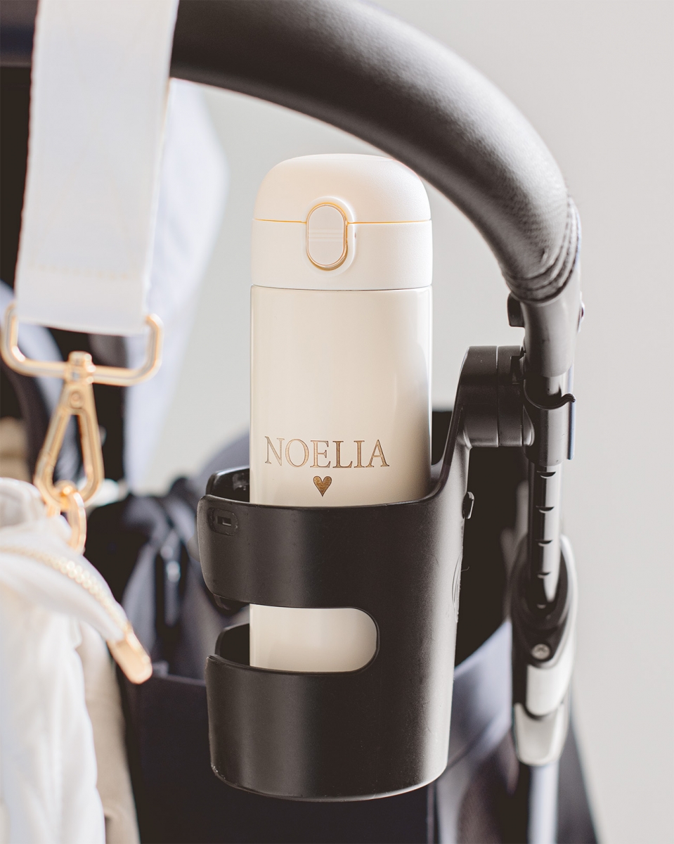 Dette nøye utvalgte foreldresettet inneholder en romslig stelleveske i cremfarge med plass til alt man trenger i løpet av dagen, en termos og et termokrus – begge med valgfri navnegravering – et praktisk stelleunderlag og en smokkholder som holder smokken lett tilgjengelig.
