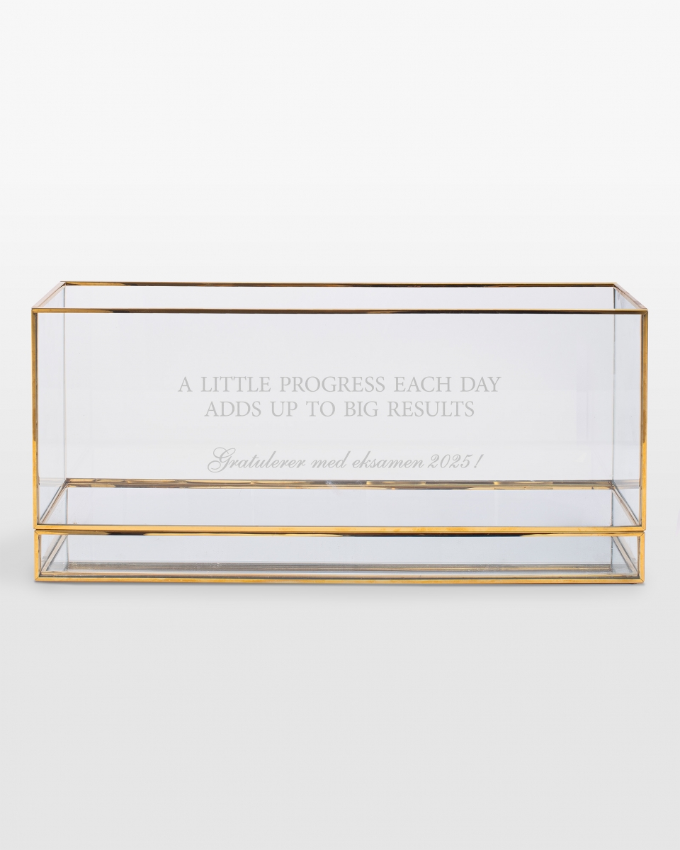 Den flotte lysboksen i gull graveres med din ønskede personlige gravering. Hvorfor ikke skrive en fin hilsen til noen nær deg, eller skjem bort deg selv og din familie med en personlig interiørdetalj? Denne vakre lysboksen med navn er perfekt å gi bort som bryllupsgave, til søsken, som innflyttingsgave eller som en rørende, personlig gave til din kjære partner.