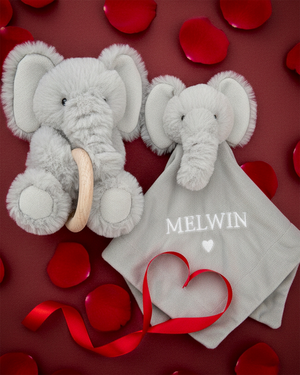 Koseklut med navn, grå – Elefant