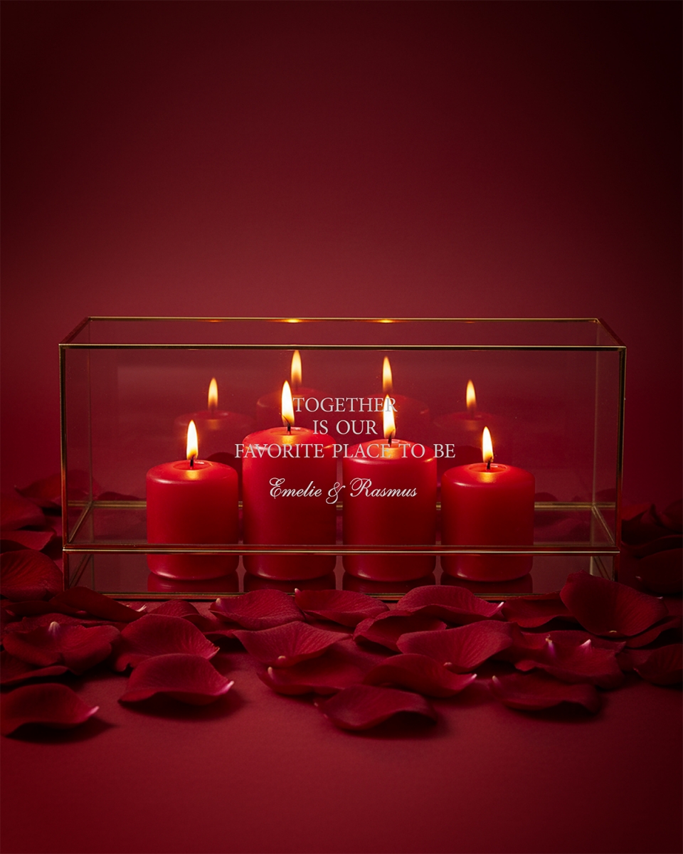 Lysboksen med speilbunn og personlig gravering blir en stilig detalj i hjemmet. Med plass til flere telys og fire glassvegger sprer lysboksen et fint og koselig skinn i rommet. En flott detalj som passer inn i alle hjem.