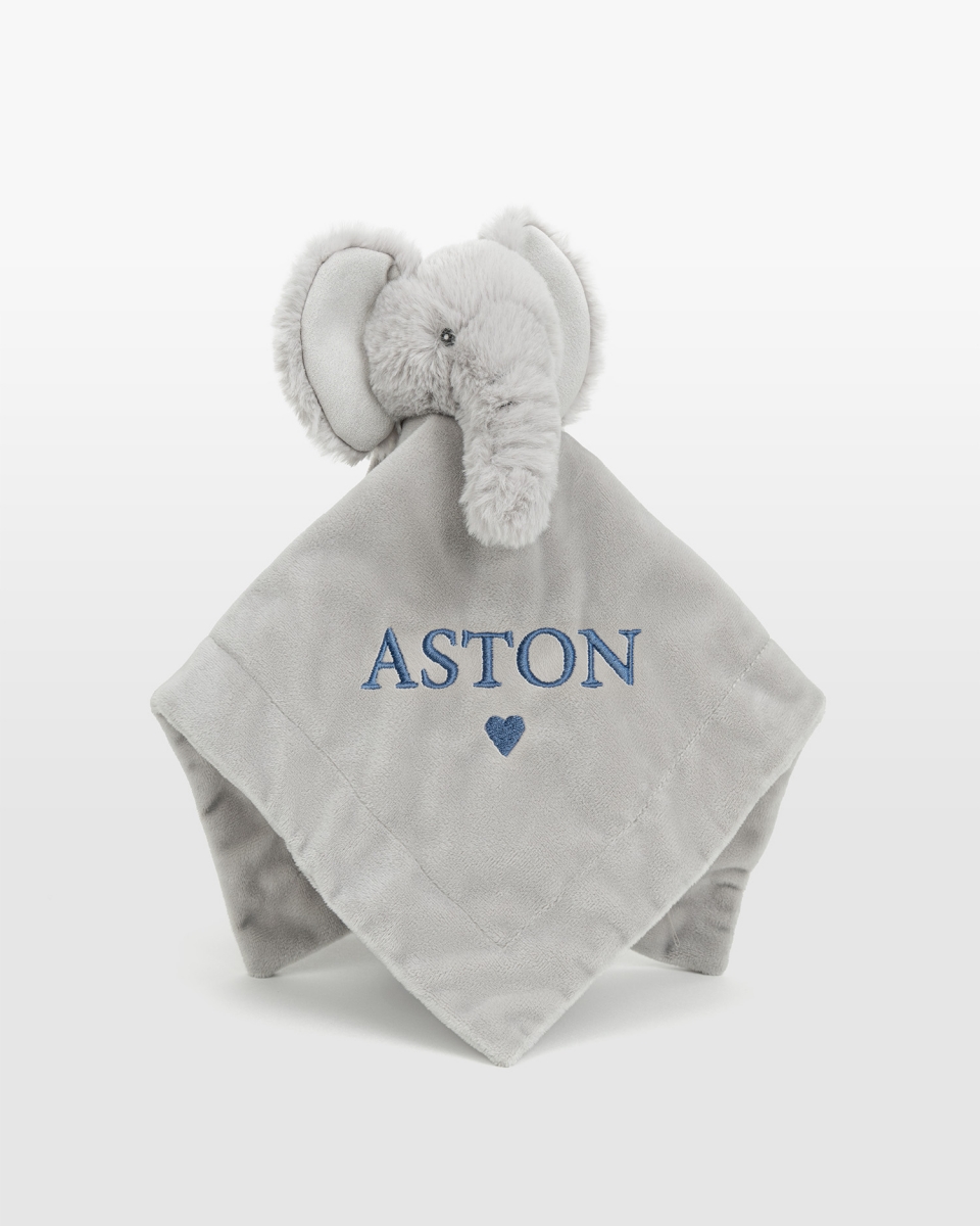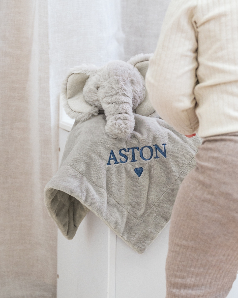 Denne kosekluten i dempede grå toner blir raskt en kjær venn som gir barnet trøst og trygghet. Med sitt myke materiale og sjarmerende elefantform er den perfekt å holde i, kose med og ta med overalt. En fin detalj i barnets verden og en verdifull trygghet gjennom de første årene.