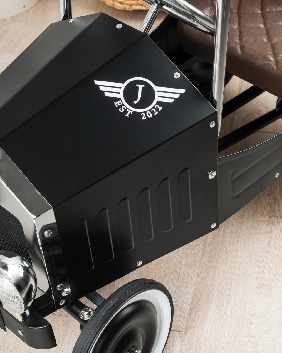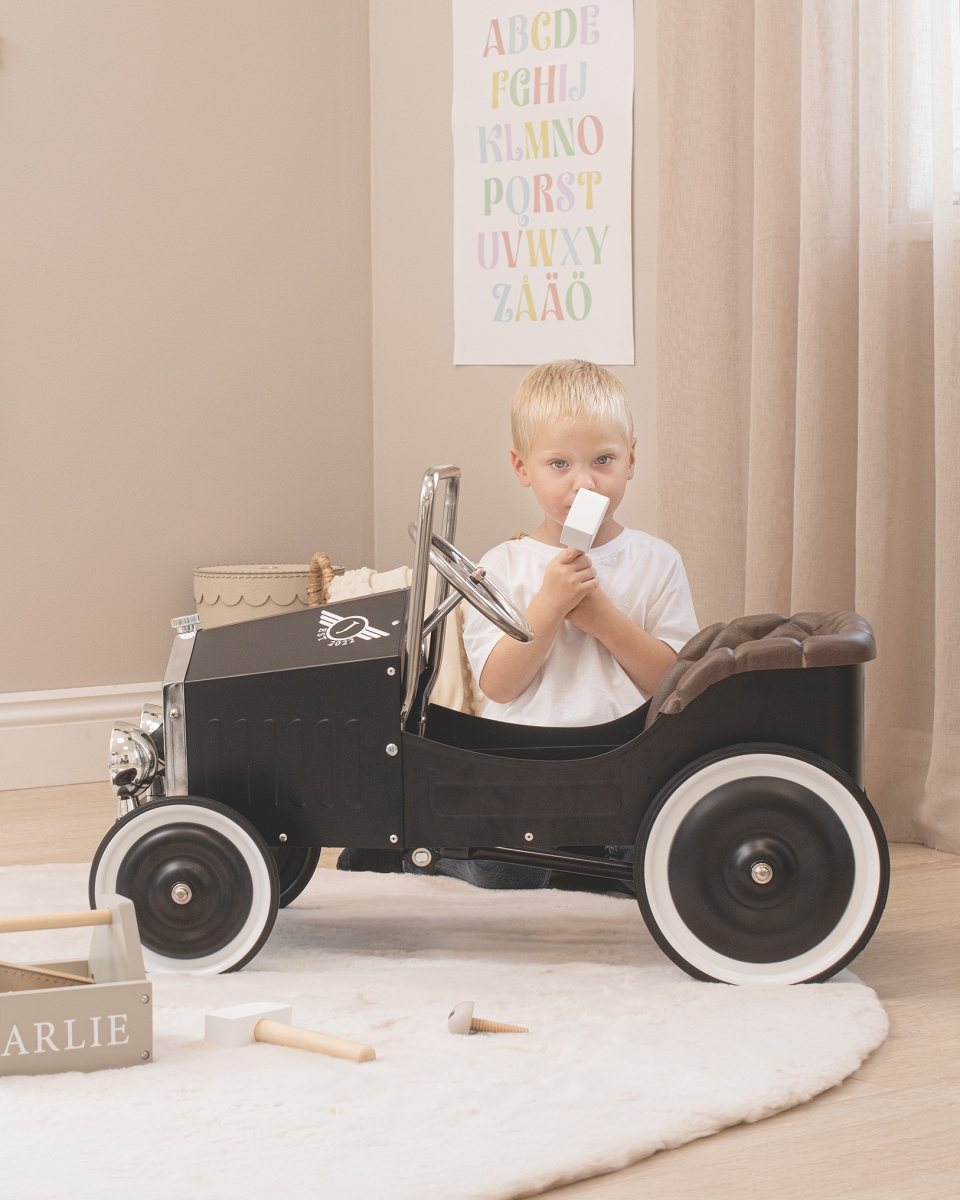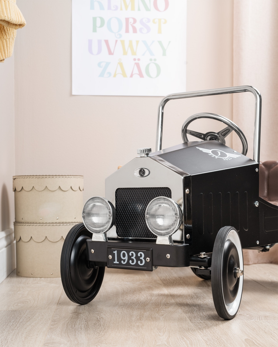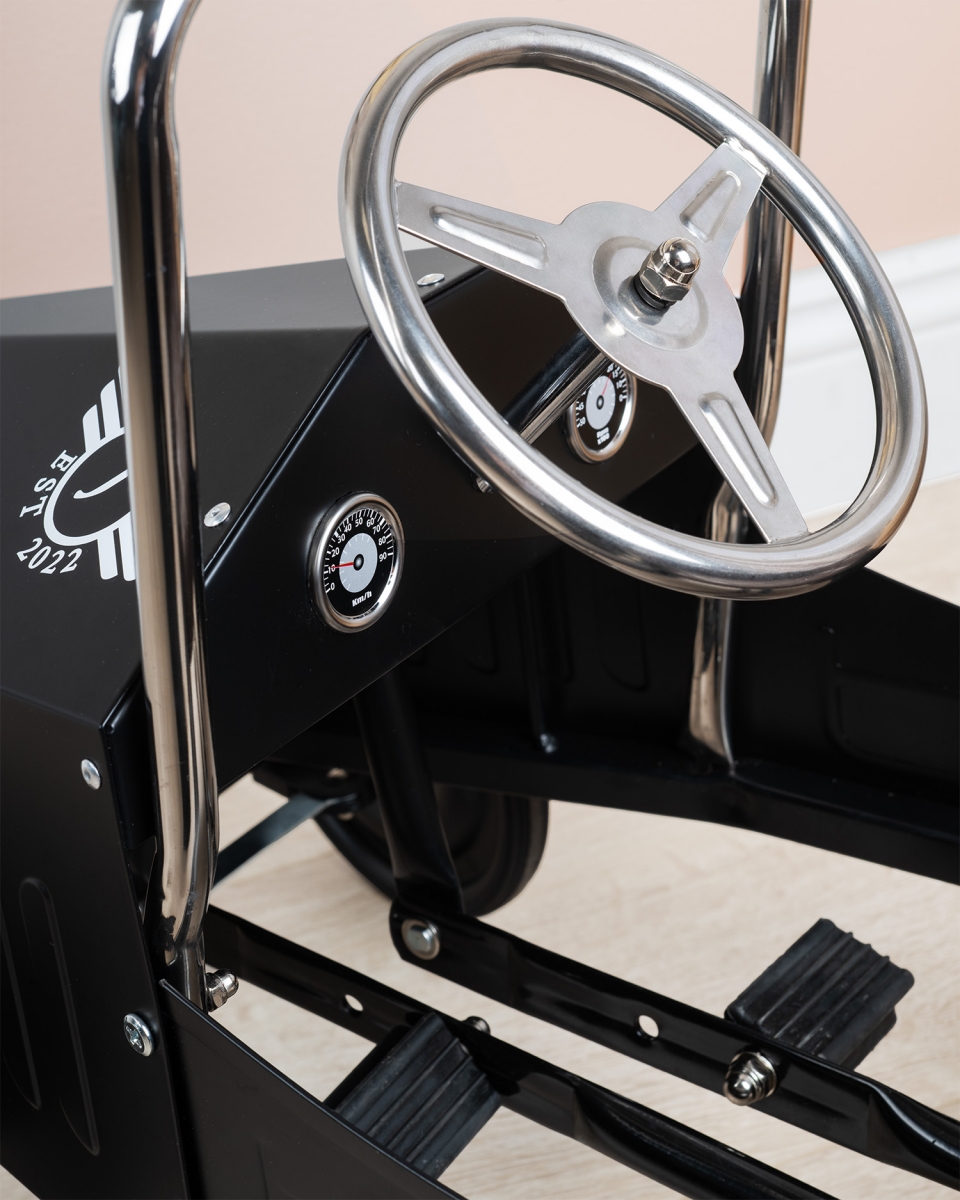 Bygd på et robust metallchassis og utstyrt med slitesterke gummihjul for smidig kjøring, blir denne bilen det opplagte valget for bærekraftig lek. Pedalene kan justeres i to stillinger for optimal komfort og enkel bruk.