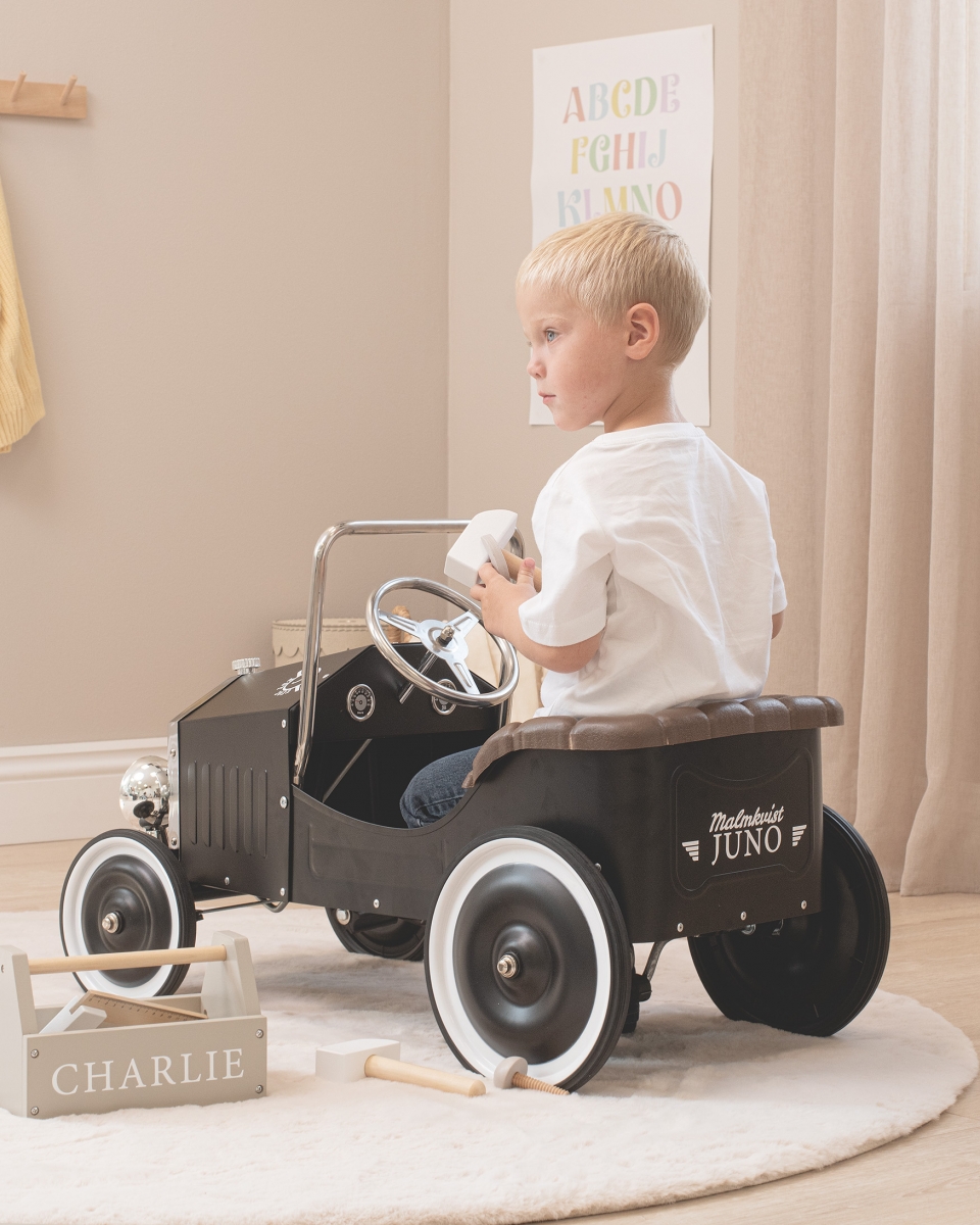 Oppdag en tidløs klassiker for lek og eventyr med vår tråbil med navn, inspirert av 30-tallets design!