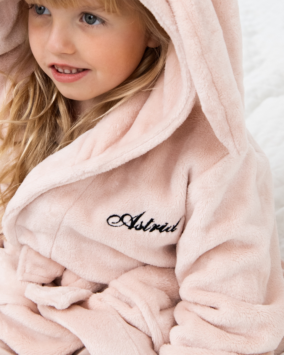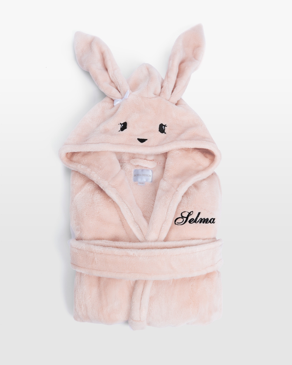 Barnemorgenkåpe med navn, rosa – Kanin