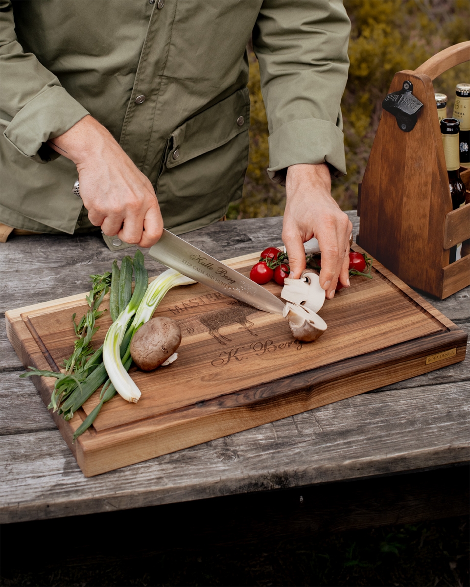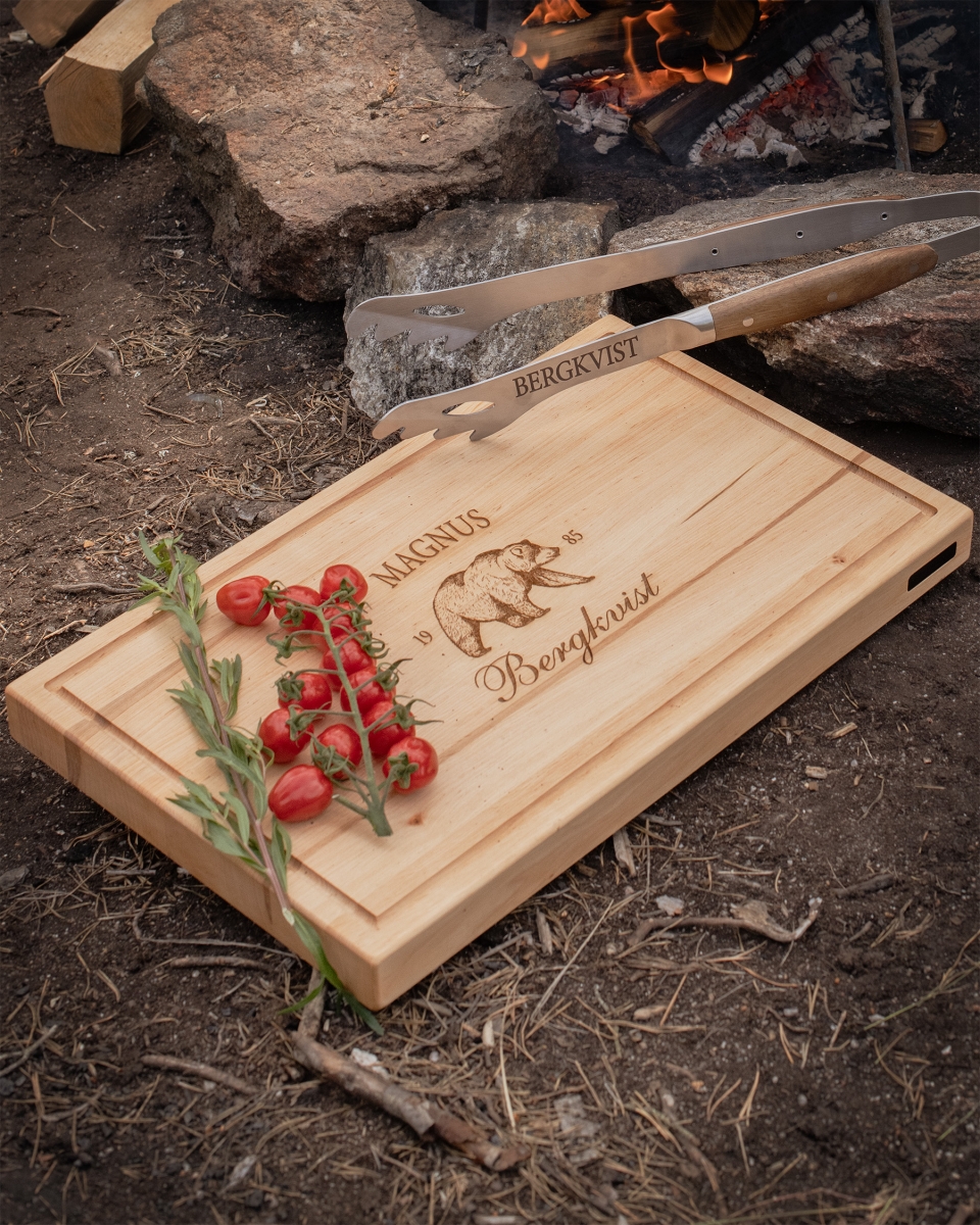 Hvert skjærebrett blir unikt med den personlige graveringen av navnet ditt og det valgfrie dyremotivet. Dette gjør at hver matlagingsopplevelse får en ekstra dose personlighet.