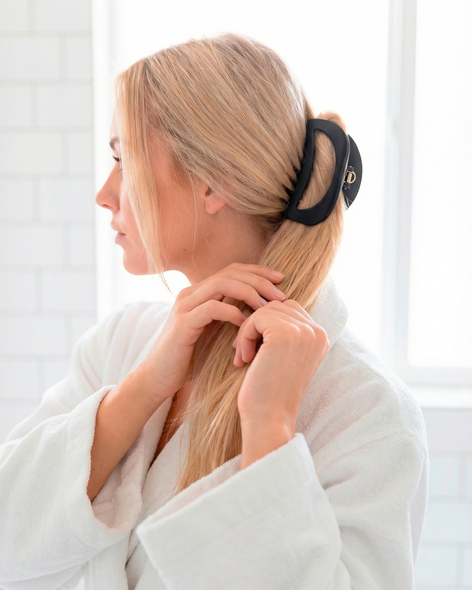 Morgenkåpe i satin & toalettmappe med navn, svart